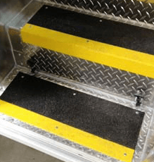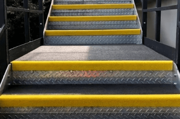 GRP/FRP kaydırmaz merdiven basamak kaplamalarımız, mevcut merdivenlerinize kolayca uygulanır. Sarı güvenlik burunları sayesinde basamak sınırları net bir şekilde görünür. Yüzeydeki kaymaz kaplama, ıslak veya kuru her koşulda maksimum tutunma sağlar. Çalışanlarınız, ellerindeki malzemelerle merdiven inerken veya çıkarken kendilerini güvende hisseder.